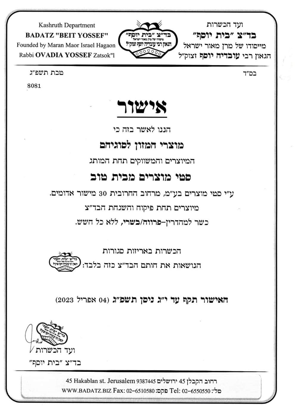 המקום בהשגחת "בד"צ בית יוסף" והרבנות הראשית מעלה אדומים